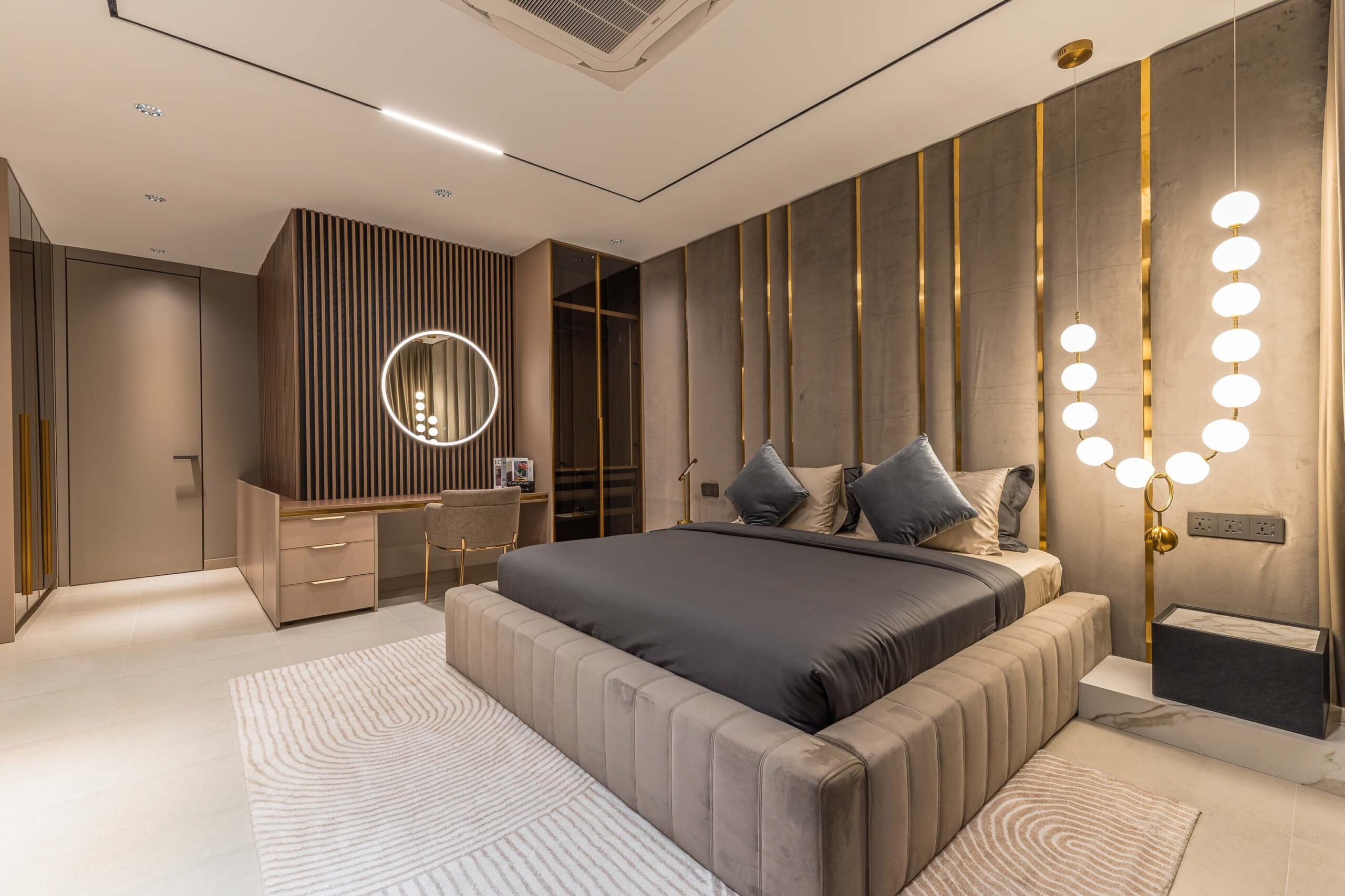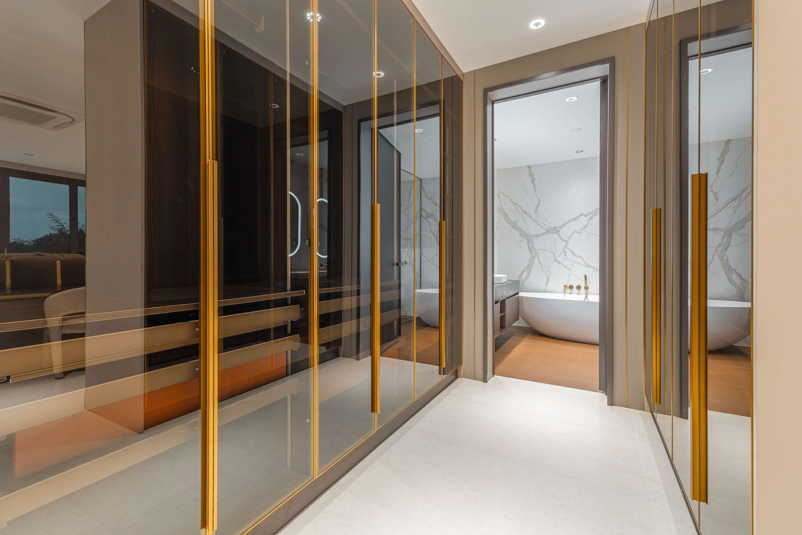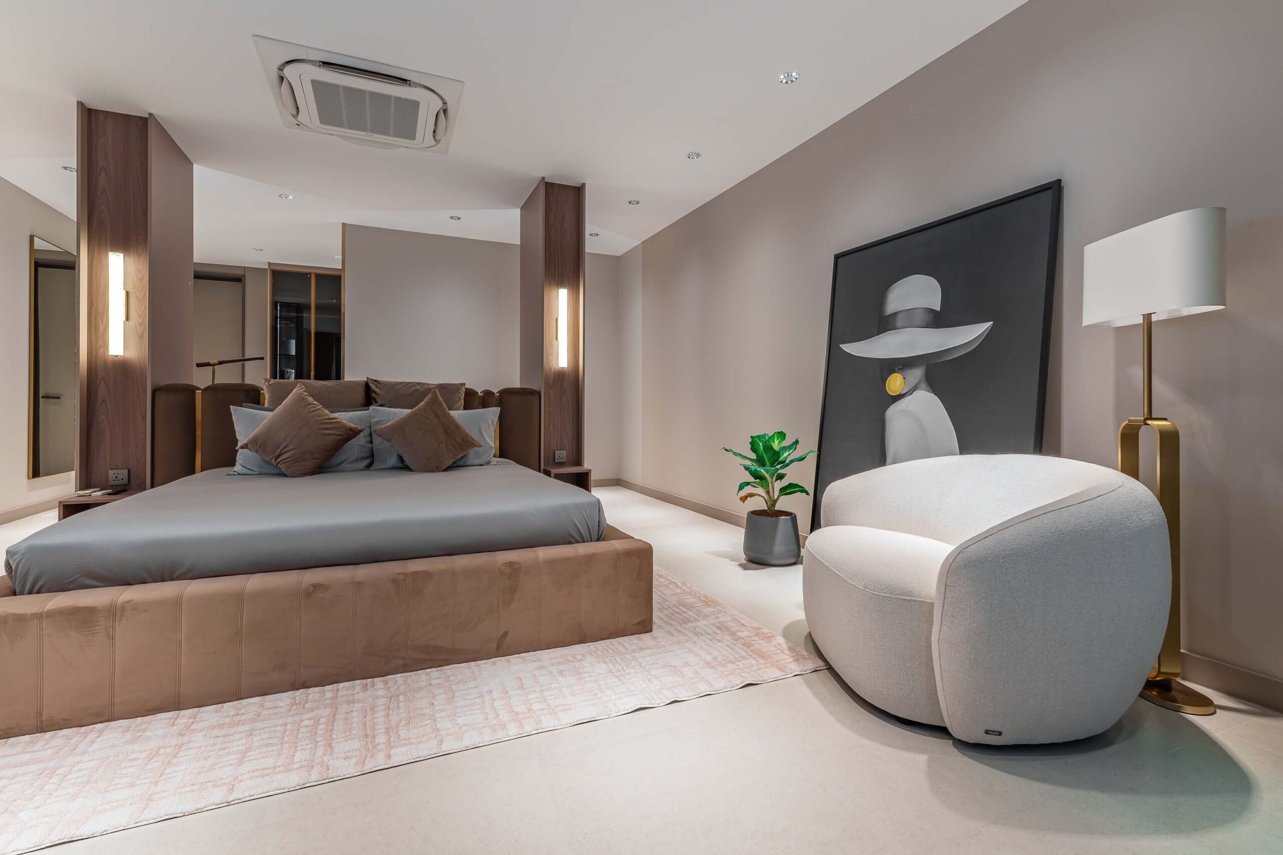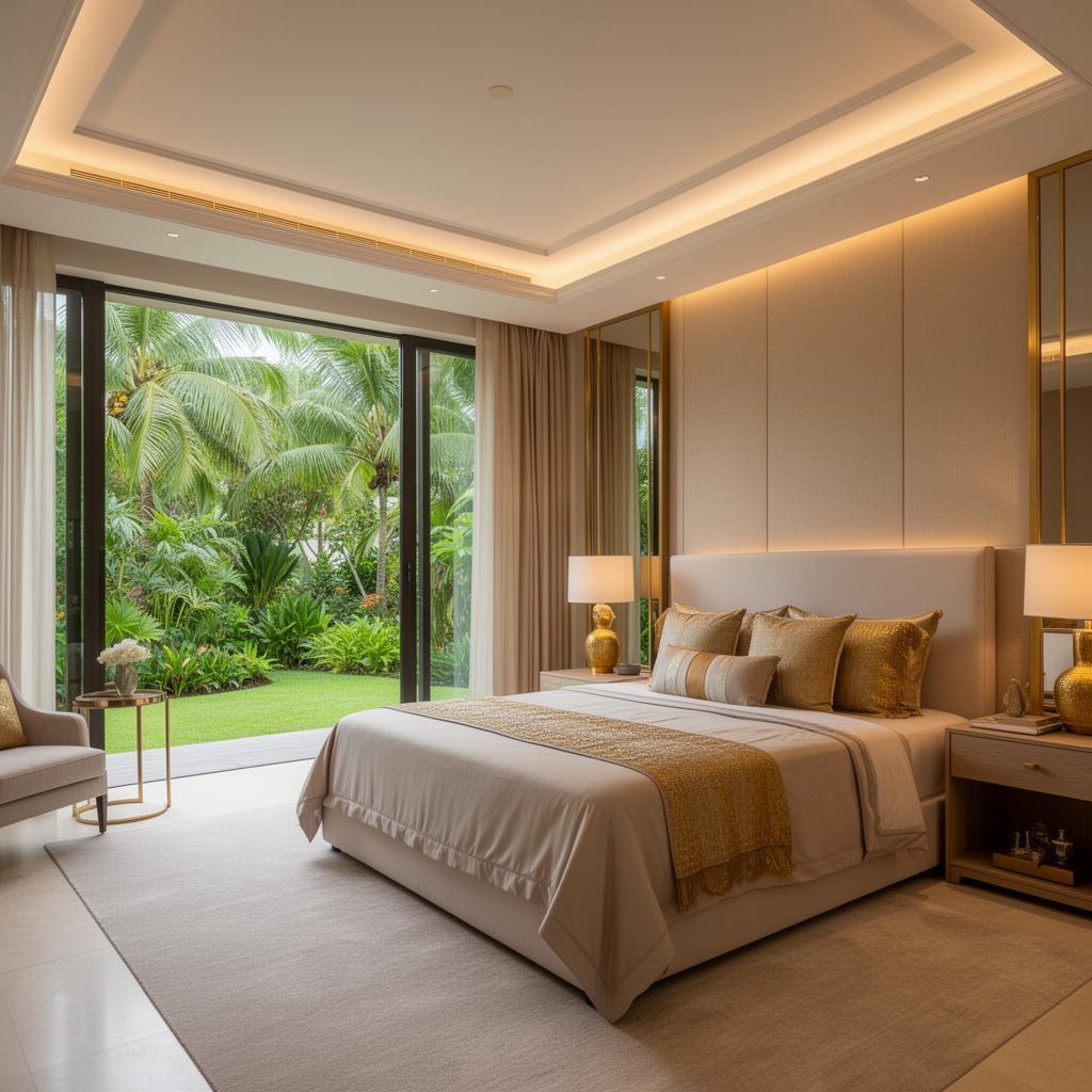 Luxurious suites with walk-in closets, en-suite bathrooms, and floor-to-ceiling windows overlooking the garden.