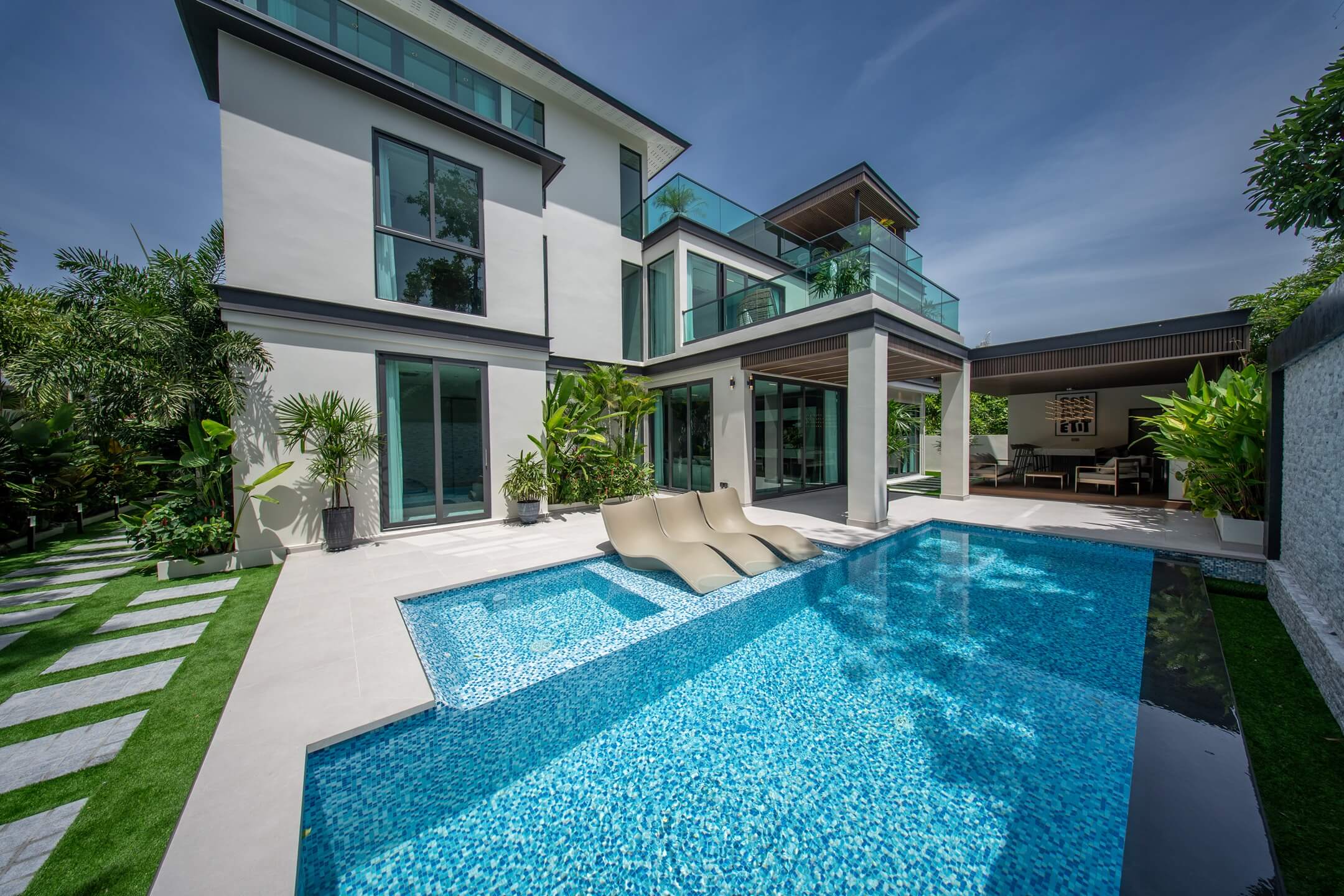 Nestled along the pristine shores of Na Jomtien, Villa Nagawari offers an unparalleled living experience — where every sunrise paints the sky above your private tropical retreat.