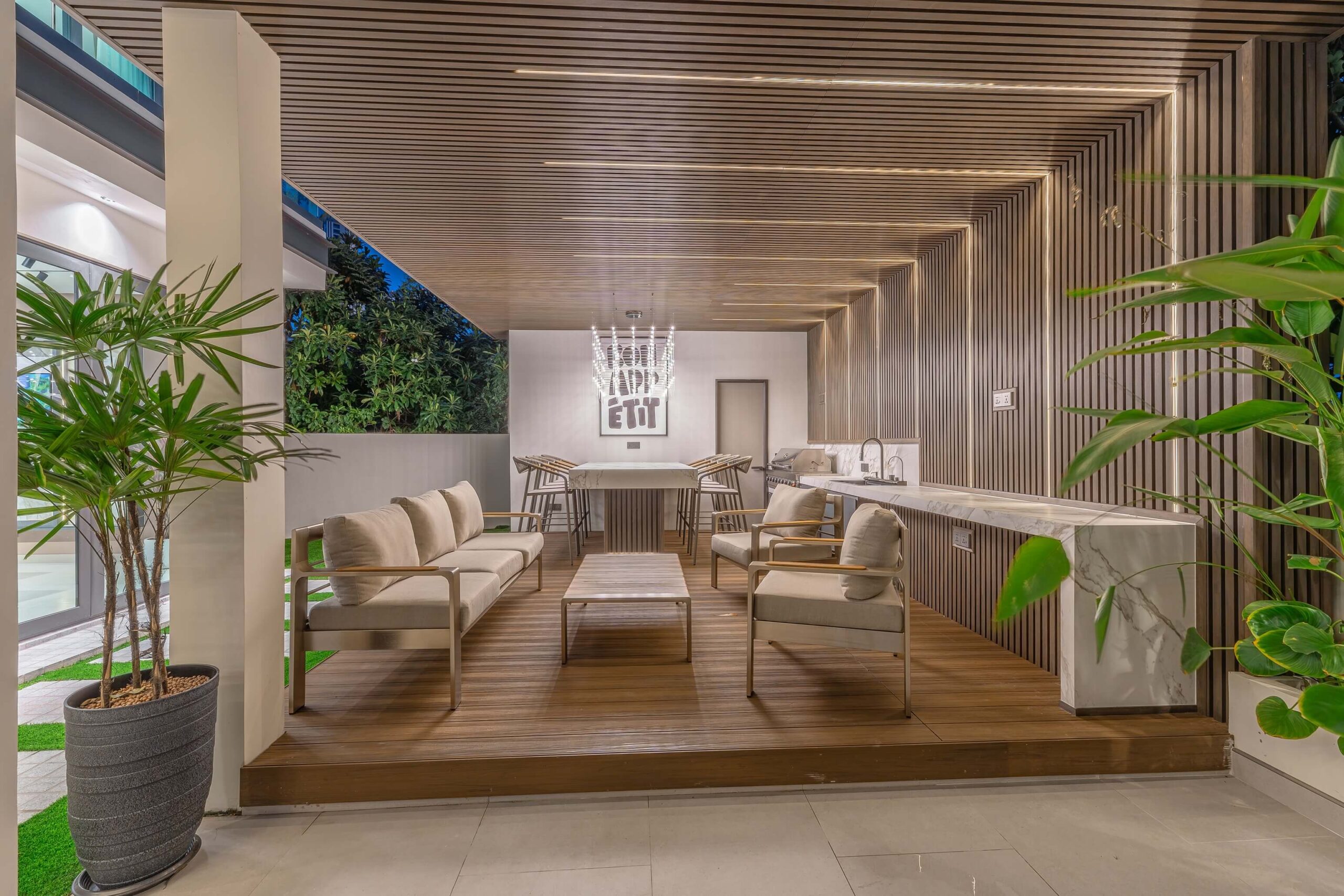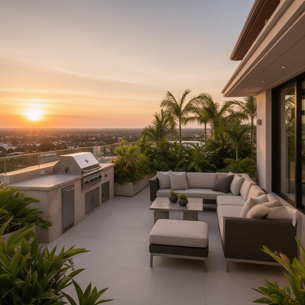 Entertain under the stars with a fully equipped outdoor BBQ kitchen, dining area, and 360° panoramic views.